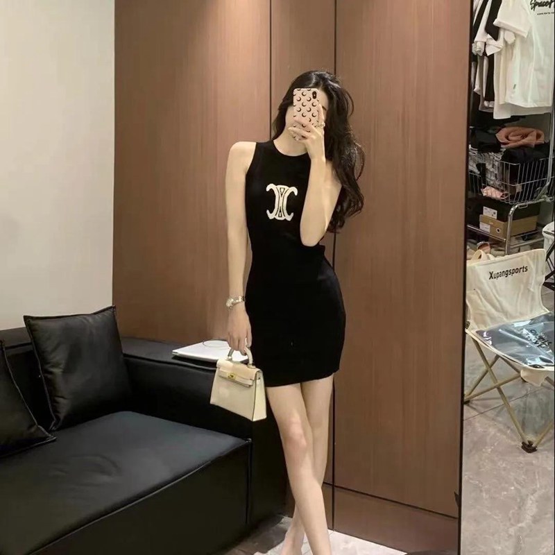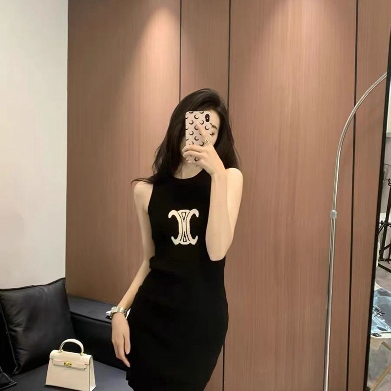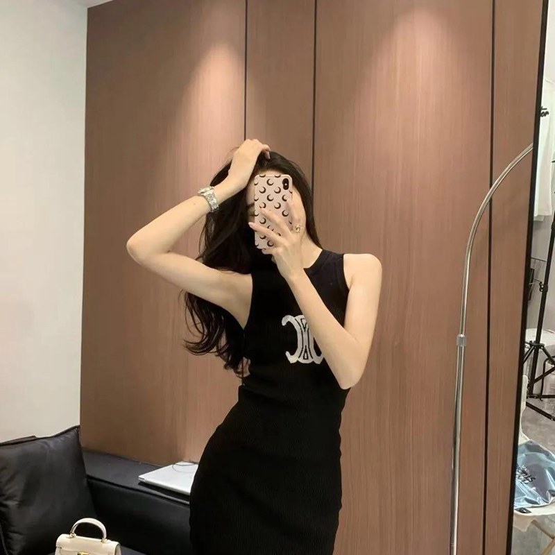 商品名:がっしりとした厚みの 無地 半袖 ワンピース。綿100%で型崩れしにくくよれにくい 韓国風CELINE セリーヌハイブランド夏 半袖 涼しい チョッキスカートブランド激安ルームウェア